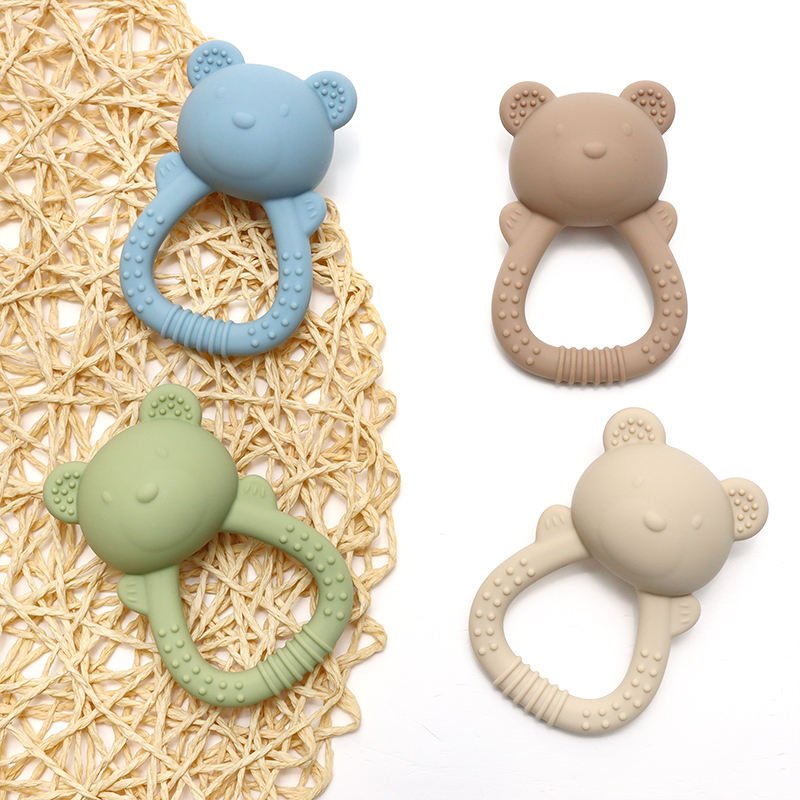 Hot Food Grade Silicone Teether Baby Rattle Toy Cartoon Animal Shape Baby Teether Sensory Toy Baby Educational Musical Toys
